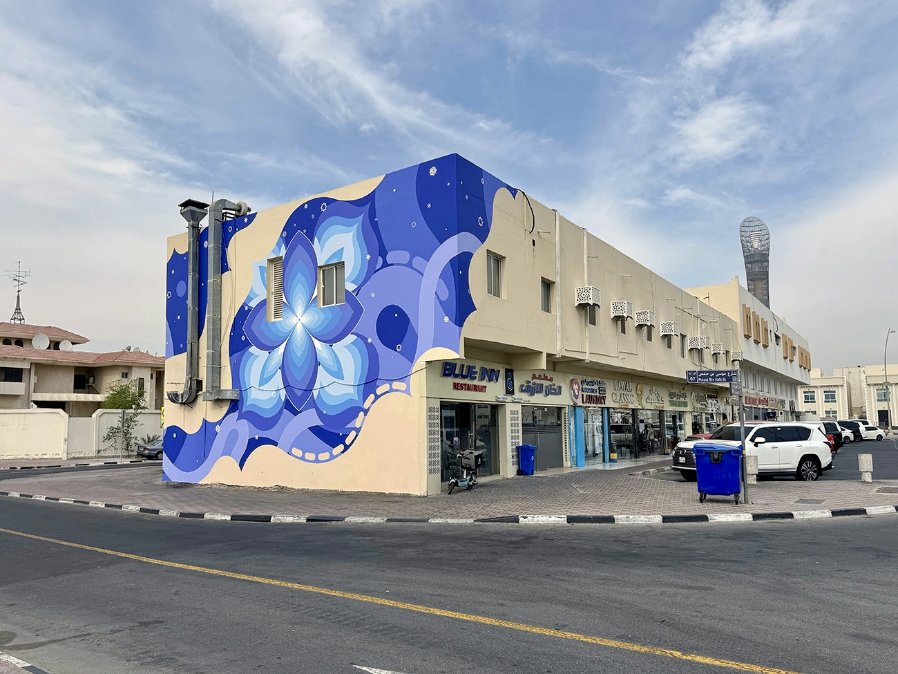 本プロジェクトは、Qatar Museumsのサポートのもと実施され、国際ミューラルプロジェクト WORLD WIDE WALLS DOHA の一環として、ドーハ市内 Al Aziziyah 地区の公共空間を舞台に、約1週間の制作期間をかけて完成しました。